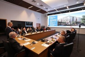 AKOM’da gerçekleştirilen buluşmaya Jeofizik Mühendisleri Odası, Jeoloji Mühendisleri Odası, Mimarlar Odası, Müteahhitler Birliği ve Harita ve Kadastro Mühendisleri Odası başkanları ile üyeleri katıldı. Toplantıda mevcut projeler ve şehirde planlanan dönüşüm adımları masaya yatırıldı.